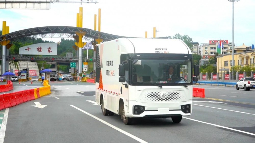 ▲中极天权4.5吨氢燃料城市物流车在十堰东下高速