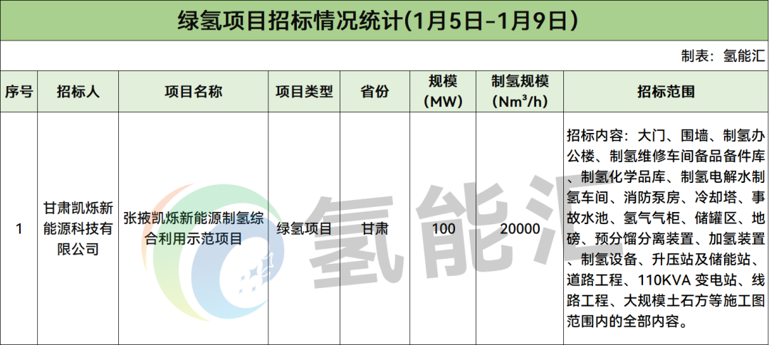 绿氢项目有1个,招标人是甘肃凯烁新能源科技有限公司。